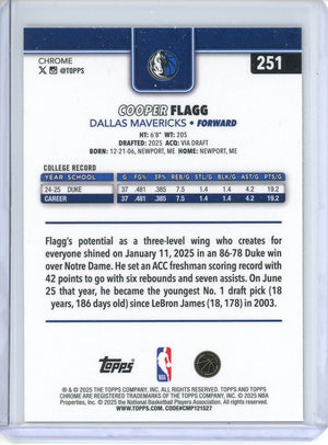 2025-26 Topps Chrome Cooper Flagg RC #251 Basketball Refractor