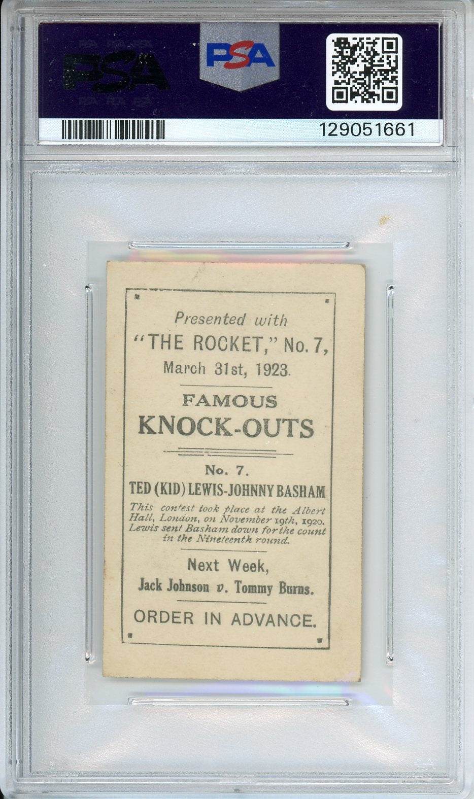 1923 The Rocket Lewis v Basham Famous Knock-Outs #7 PSA 3